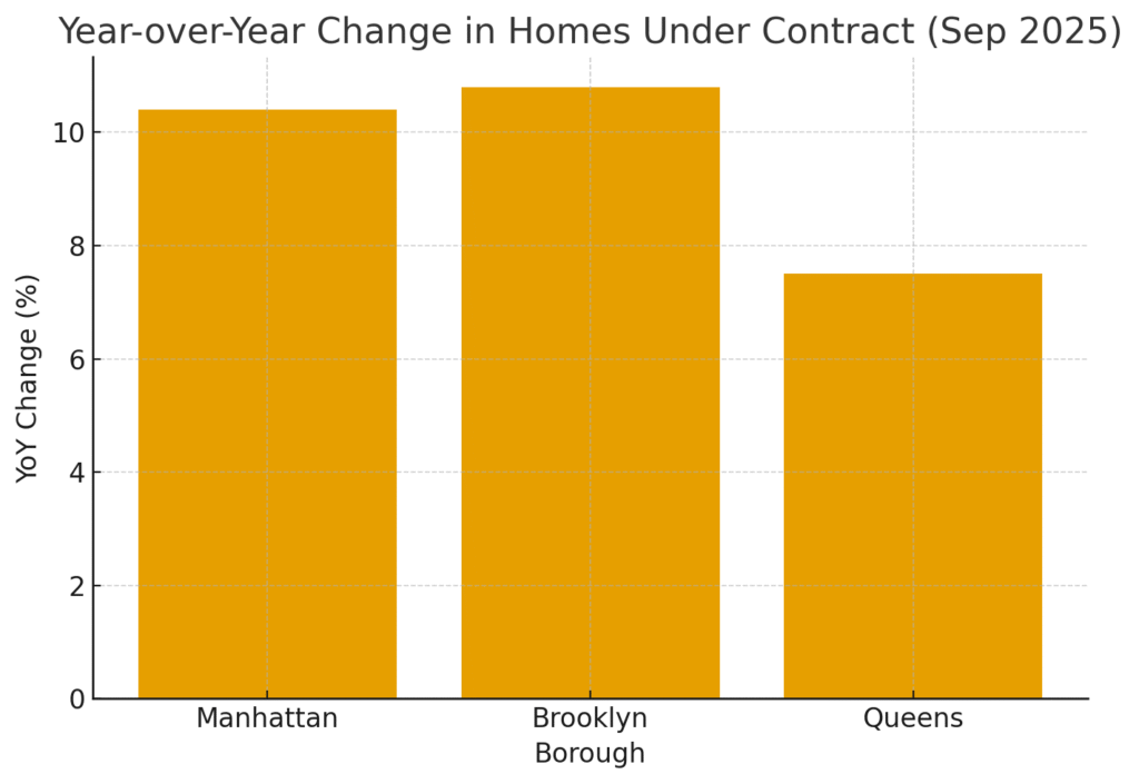 According to StreetEasy, 1,721 homes went under contract in September 2025, up 10.3% from the same month last year.